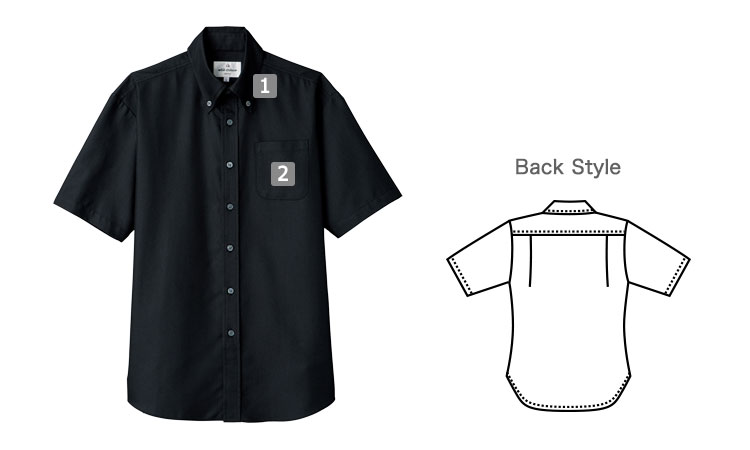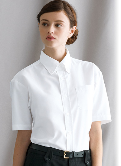 スタンダードなボタンダウンタイプの半袖シャツ。 シワになりにくく、毎日のお手入れが簡単なイージーケア素材を使用。 1枚で着ても、帽子やタイ、エプロンなどとコーディネートしても様になります。