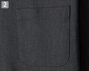 メモやペンなどの収納に便利な左胸ポケット付きです。