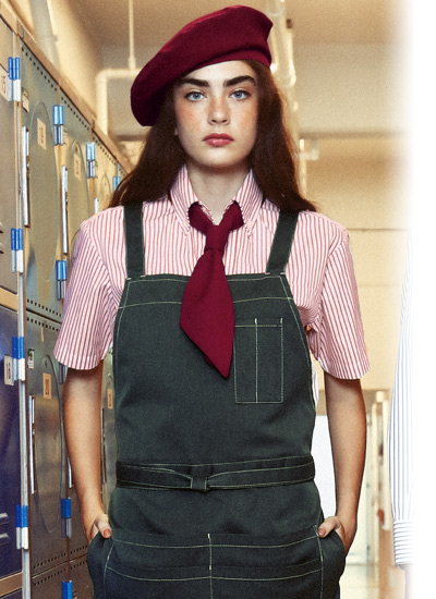 襟元がボタンダウン仕様になっていることで、カジュアルすぎず、きちんと感も演出。ユニフォームには最適です。