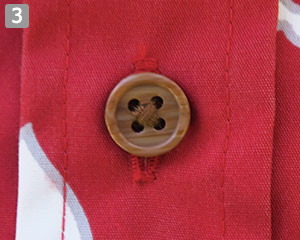 襟ハネがなく、きちんと感を演出するボタン留めタイプの襟元。