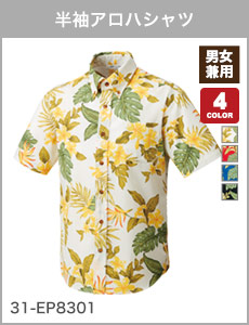 【在庫限り】七分袖アロハシャツ[男女兼用](31-EP8303)