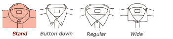 様々なシーンで使えるスタンドカラー。シャツと同じ色のボタンを使用し、シンプルで合わせやすいデザインです。