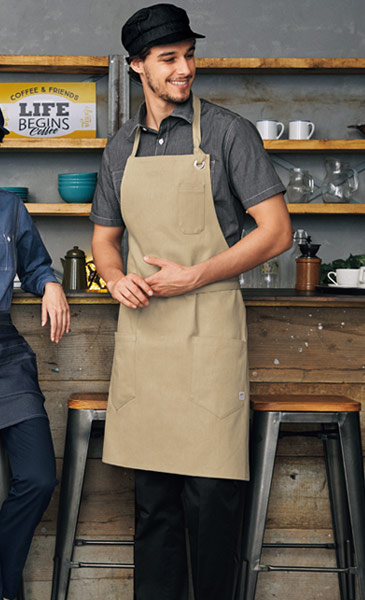 カフェやレストランなどの飲食店にぴったりのカジュアルなダンガリーシャツ。白いステッチが爽やかさとカジュアルな印象を与えてくれます。ポリエステル混率が高く、お手入れしやすい点もポイント!