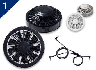 空調服®として使用するためには、ファンとバッテリーのデバイスセットが必要です。