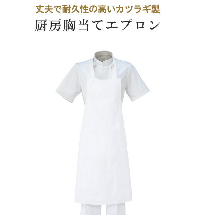 厨房胸当てエプロン。丈夫なカツラギ素材。
