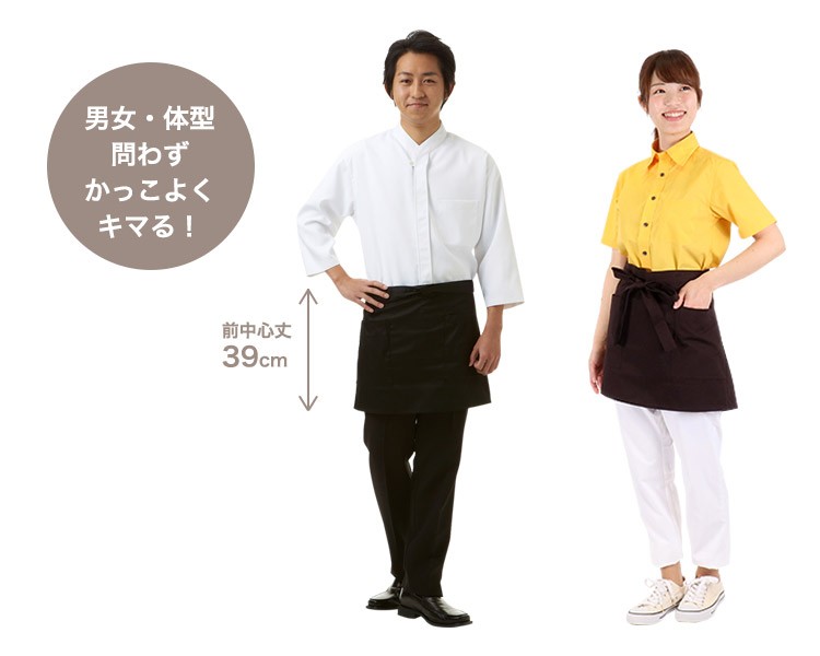 シンプルでスタンダードなデザインなので、幅広い業種のお客様におすすめできるエプロンです。カラーバリエーションが豊富なので、役職や店舗によってエプロンの色を変えて使うのもおすすめです。