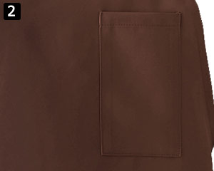 ポケットの位置は正面にあるのがよかったです。脇にあるとタオルを入れてふくらんだポケットが作業中にじゃまになることがあるからです。
