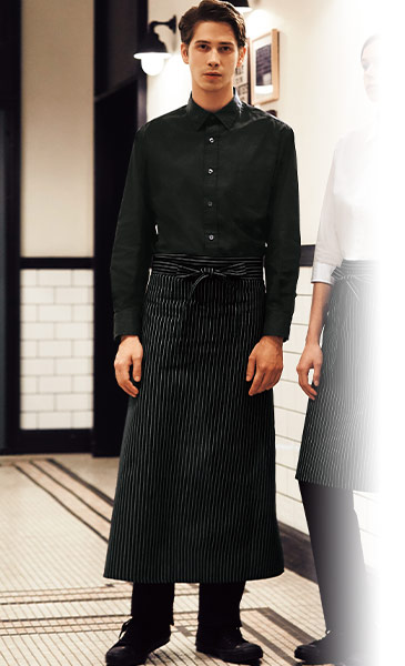 黒のストライプが大人の印象を与えてくれるかっこいいデザイン。丈が91cm以上のストライプ柄のエプロンはあまりないので、おすすめの商品です。