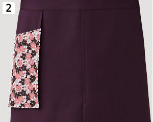 ユニフォームが古くなってきて、どうせなら新年からは新仕様に、と色々と変更しました。このエプロンは見た目華やかですし、つけた感じもさらっとしていてシワになりにくいのが良かったです。