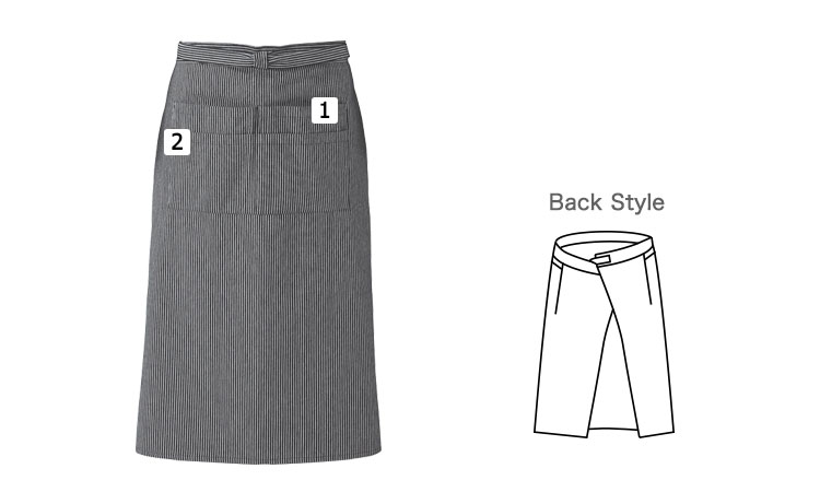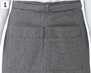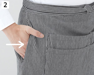 両腰にあるスリットから、エプロンの下に着用しているボトムのポケットに手を入れて鍵などの小物を取り出すことが可能。