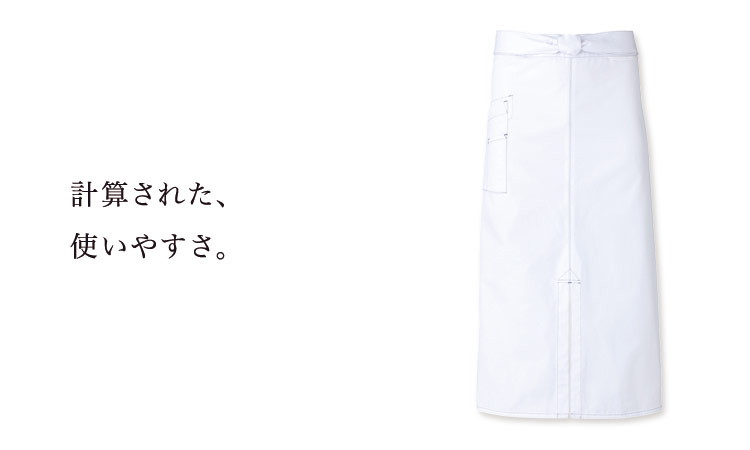 - 右ポケット、前中心スリット、ナフキン掛けループ