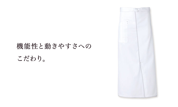 真剣勝負の場で、最高のパフォーマンスを引き出せるようプロの視点を随所に生かしたエプロン。