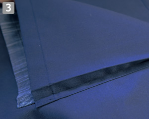ほどよい厚みのウェザー素材。ハリがあり、なめらかな質感が魅力です。