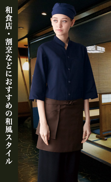 洋風・和風問わずコーディネートにマッチするスタンダードなショートエプロン。右ポケットは外付けタイプなので、動きを妨げず快適です。