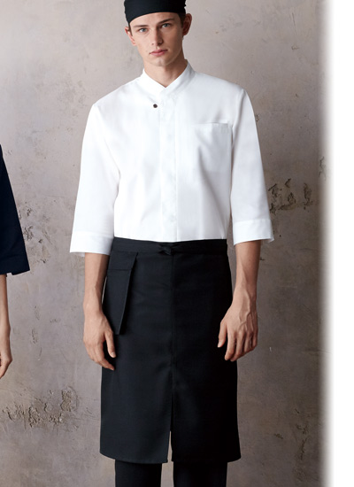 洋風・和風問わずコーディネートにマッチするスタンダードなミドルエプロン。右ポケットは外付けタイプなので、動きを妨げず快適です。