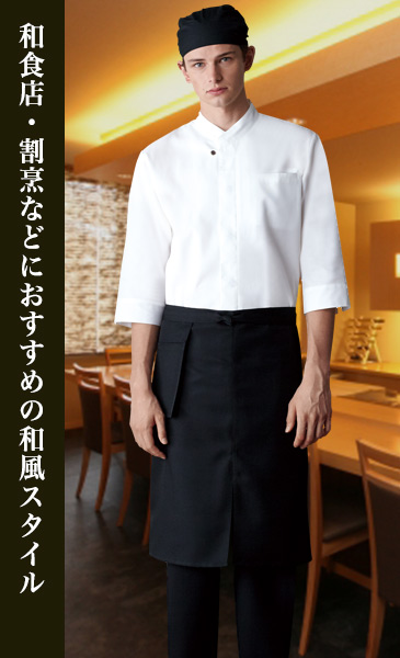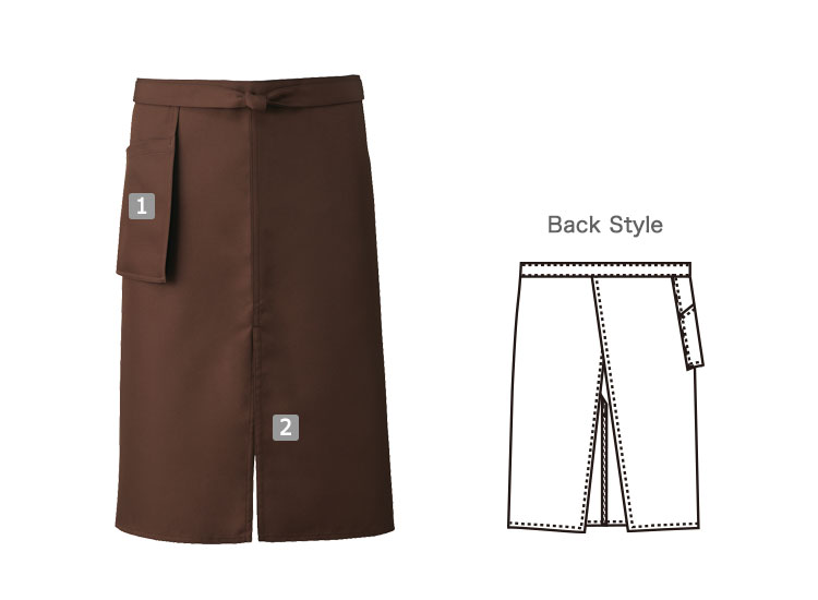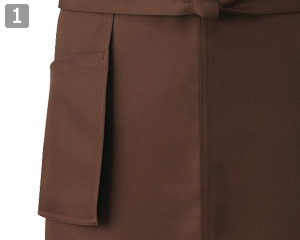 洋風・和風問わずコーディネートにマッチするスタンダードなミドルエプロン。右ポケットは外付けタイプなので、動きを妨げず快適です。
