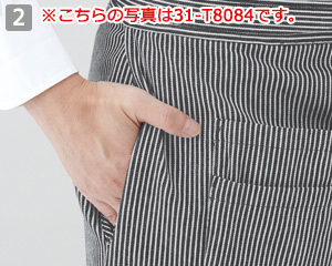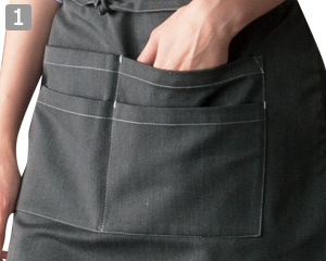 両腰にあるスリットから、エプロンの下に着用しているボトムのポケットに手を入れて鍵などの小物を取り出すことが可能です。