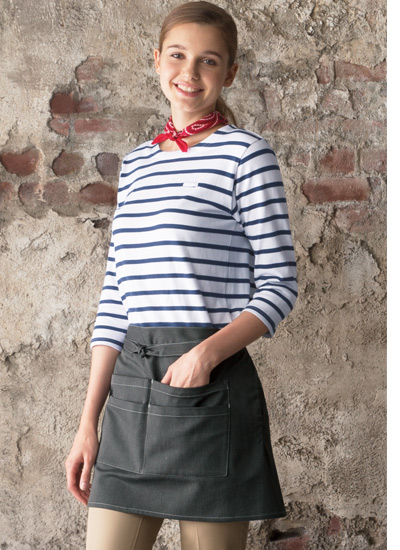着用すれば、一気におしゃれな雰囲気になるデニム素材を使用したショートエプロン。カジュアルな空間にマッチします。