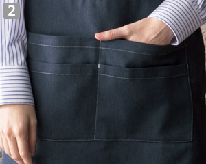 ストレッチ性のあるデニム素材を使用しているため、デニム特有の硬さもなく、動きやすいエプロンです。