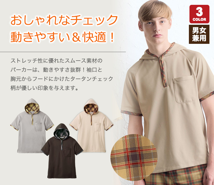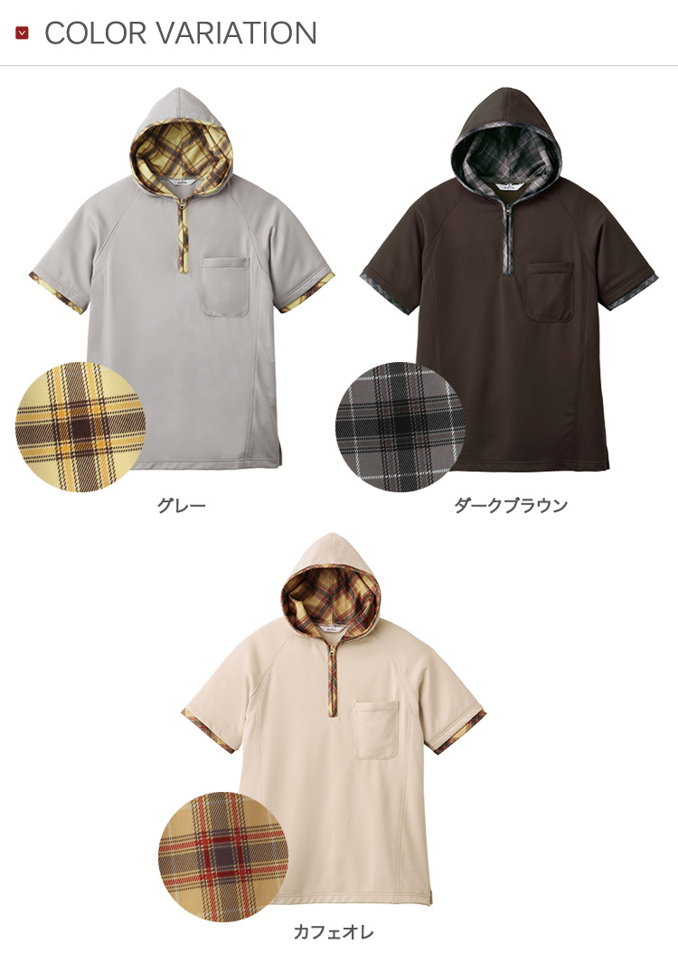 【在庫限り】フード―パーカー半袖[男女兼用](31-UN0009)