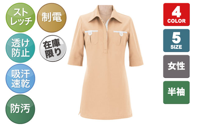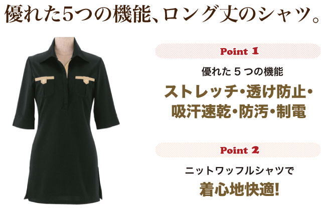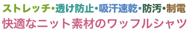 ストレッチ・透け防止・吸汗速乾・防汚・制電のストレッチワッフルシャツ