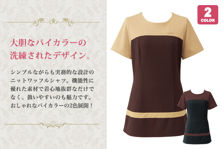レディースニットワッフルシャツ(半袖)(32-00121)
