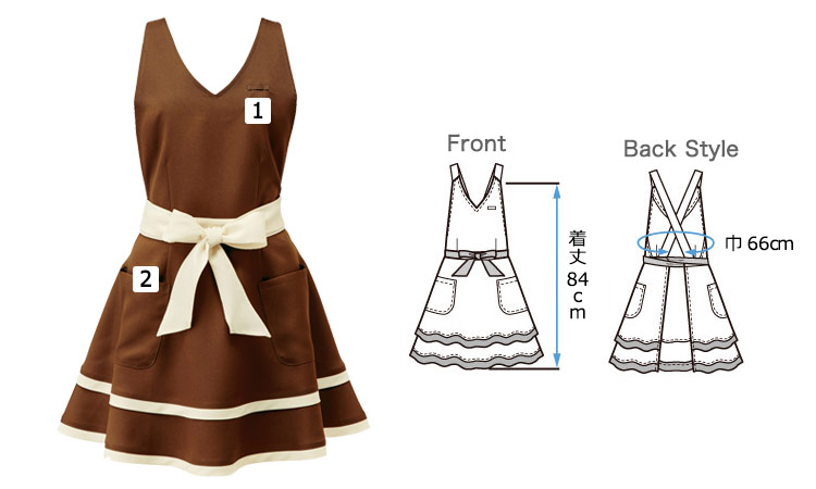 胸当てフリルエプロン[女性用](32-00916)