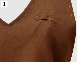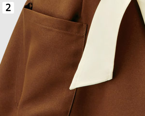 左胸に便利なネームプレートループ付き。安全ピンなどをエプロンに刺す必要がありません。