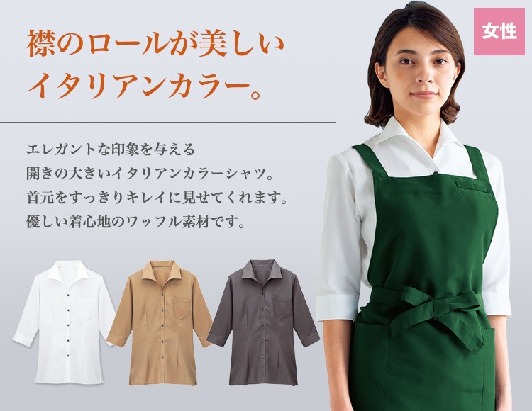 イタリアンカラーシャツ/七分袖[女性用](32-08935)