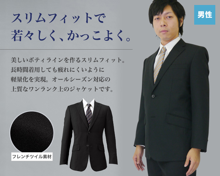 ボンユニの男性用ジャケット。長時間の着用でも疲れにくい様、軽量化を実現。 ワンランク上の上質素材はホテルマン・ブライダルなどにおすすめのジャケット。 スッキリ細身のスリムフィットタイプ。