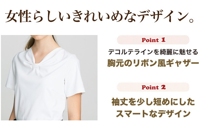 ボンユニのカットソー。デコルテラインをきれいに魅せる胸元のリボン風ギャザーがポイントのきれいめカットソーは、袖丈を少し短めにしたスマートな一枚。 品の良いコーディネートに最適です。透けにくいのも嬉しい!