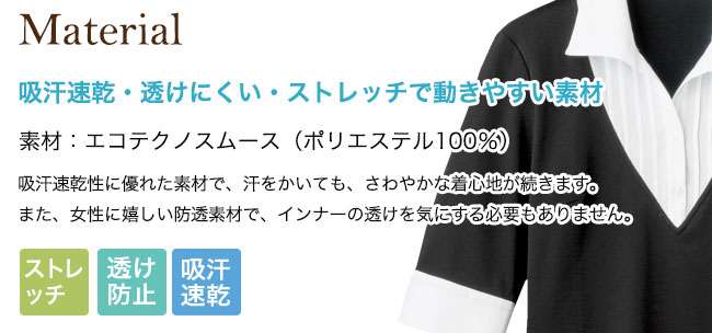 - ストレッチ、透け防止、吸汗速乾