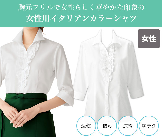 イタリアンカラーシャツ/七分袖[女性用](32-24226)