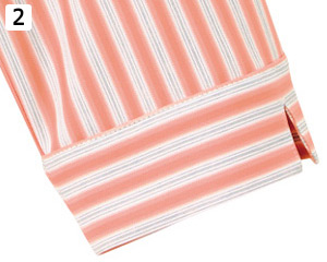 - 左胸ポケット、ネームプレートループ、袖先スリット、腕上げ楽ラクパターン