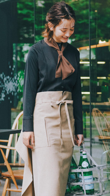 前身頃の大きめタックすっきりと上品な印象のブラウスです。アジアンとヨーロピアンが融合したような粋なフォルムです。エプロンと合わせることはもちろん、ジャケットと合わせてフォーマルなシーンにも着用可能です。