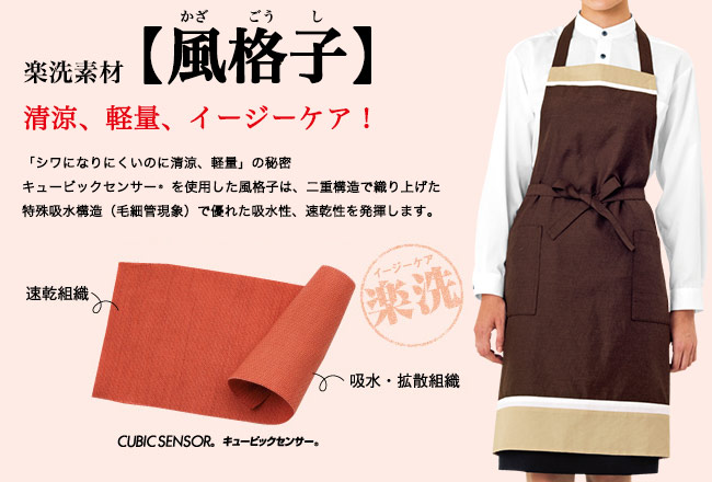 抜群の軽さで着ていることを忘れてしまいそうな胸当てエプロンです。