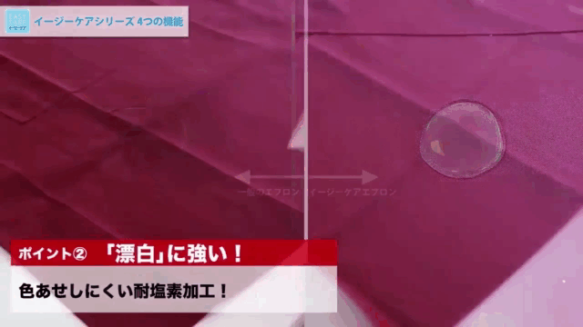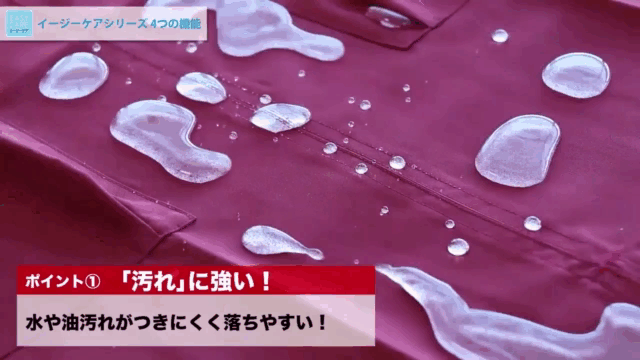 - イージーケア、耐塩素、耐久撥水・撥油・耐久防汚(リップガード)、制電