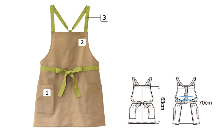 ボンユニの胸当てエプロン。ビタミンカラーがアクセントの胸当てエプロンは、ナチュラルな色合いにビタミンカラーのコントラストが美しい。 飲食店やカフェ、それらが入る複合施設などでも、個性たっぷりの存在感をアピールしてくれます。