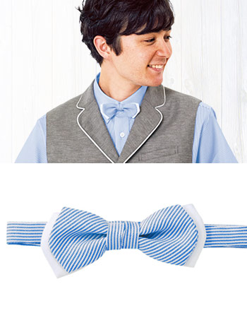 同素材のシャツに蝶タイをつければ、おしゃれな旬のスタイルを実現。