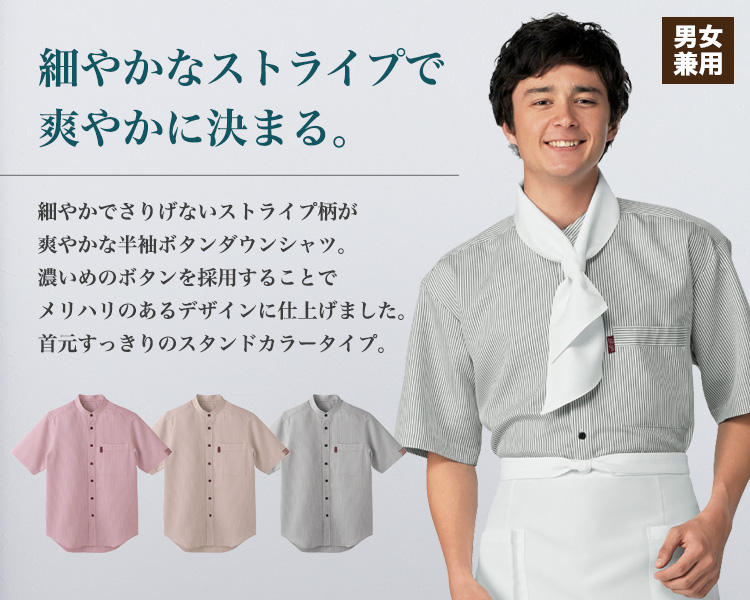 スタンドカラーシャツ/半袖[男女兼用](32-33302)