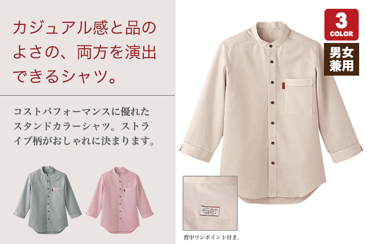[通年]スタンドカラーシャツ/七分袖[男女兼用](32-34301)
