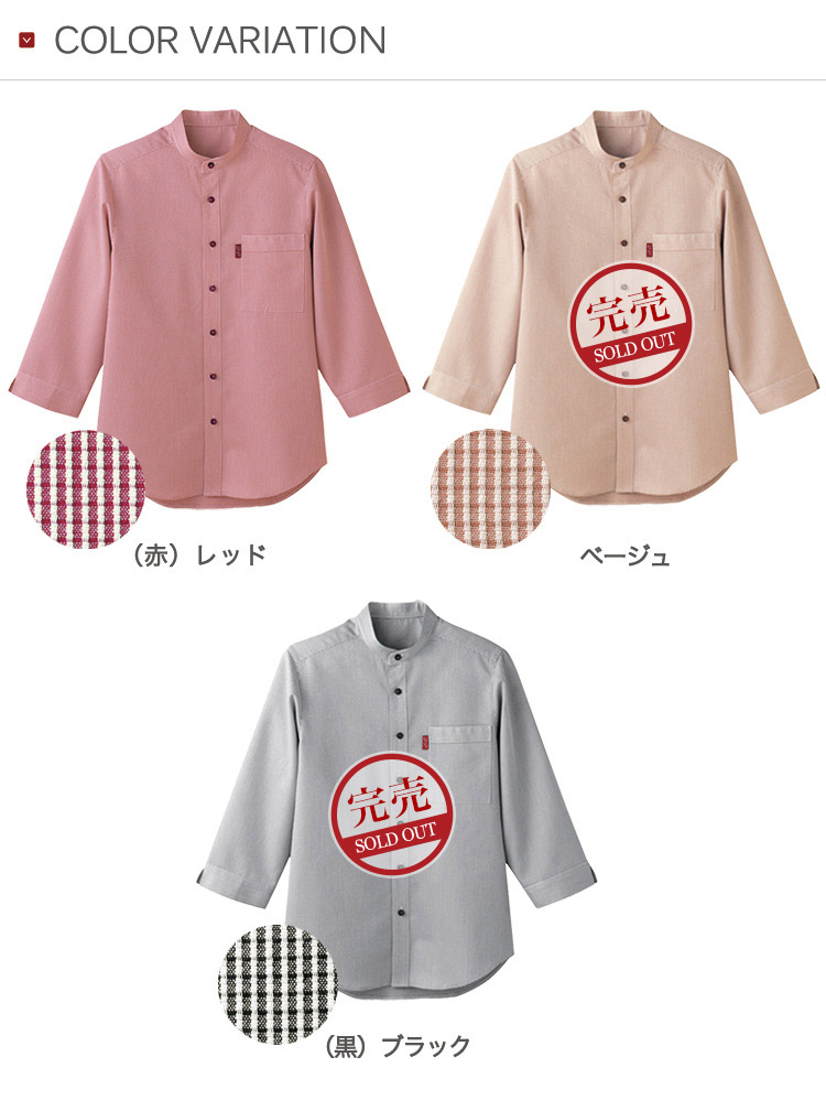 【在庫限り】スタンドカラーシャツ/七分袖[男女兼用](32-34302)