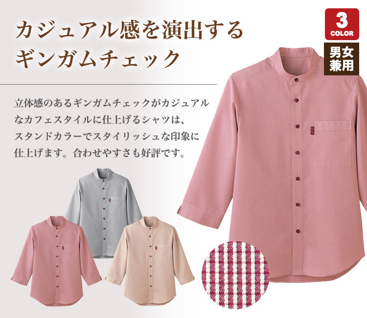 スタンドカラーシャツ(七分袖)[男女兼用]