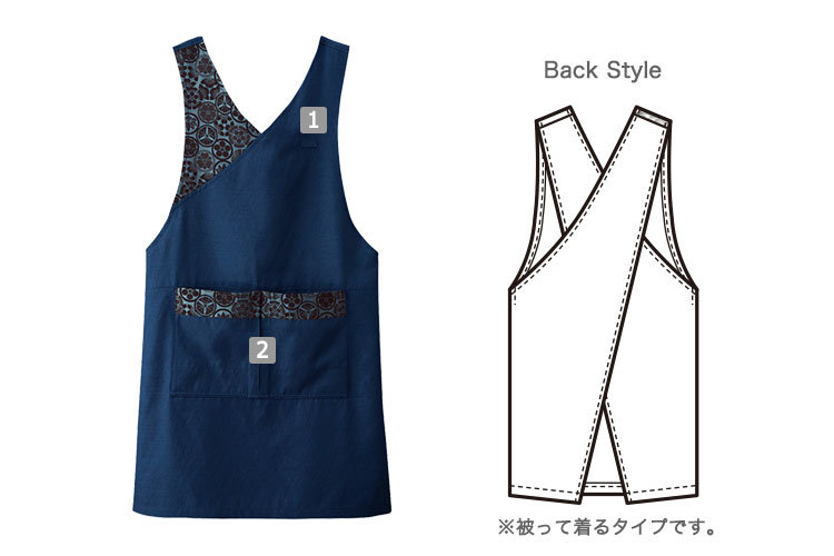 家紋柄胸当てエプロン風格子[女性用](32-47201)