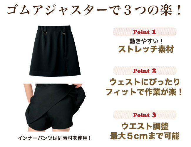 ■仕様:ゴムアジャスター付、ベルト通し、両脇右後ろポケット、 後ろファスナー、