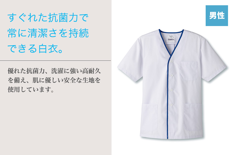 デザイン白衣/襟なし/半袖[男性用](33-FA347)