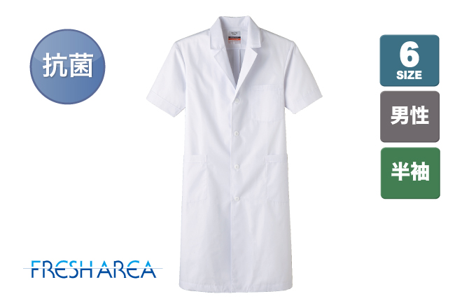 パワフルな抗菌効果を発揮する、頼もしい白衣(検査衣)。 O-157菌にも効果のある、抗菌・防臭効果をさらに強力にした高度抗菌加工。 微生物の細胞膜に直接作用するので、効き目が早く、耐性菌の増殖を抑制します。 フレッシュエリアは、繊維上での微生物の増殖を強力に抑え、 繰り返しの洗濯後も抜群の効果を発揮します。 実験施設、ドラッグストア、調剤薬局、薬剤師、栄養士にも最適です!