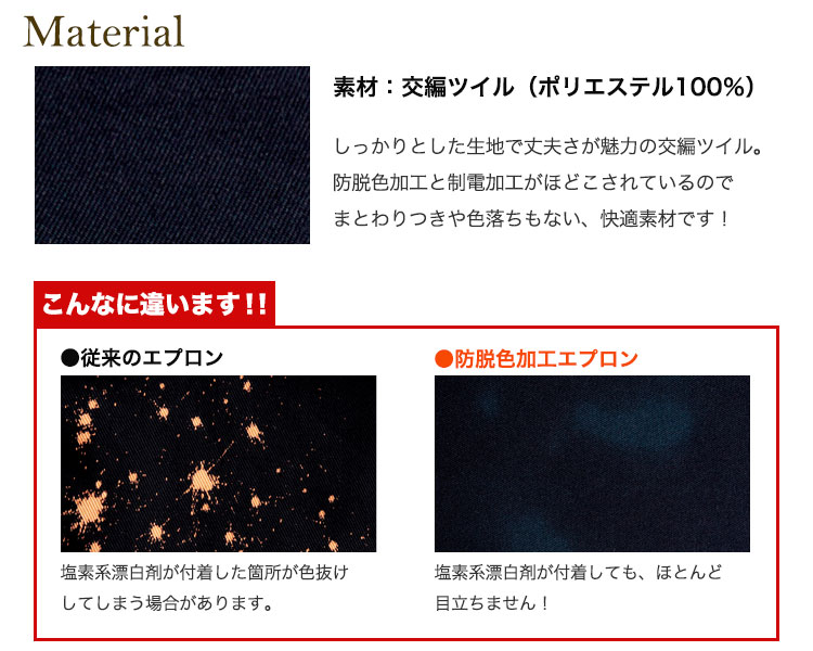 アンクル加工ショートエプロン(前掛け) 食器を洗う時や掃除するとき、漂白剤や洗剤がはねてしまい色抜け・ 脱色してしまった!という 経験はありませんか? そんな時にも安心してお使い頂けるエプロンです!