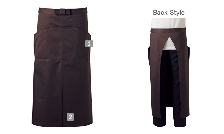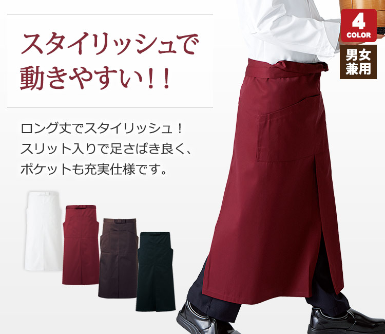 サーヴォ(SerVo)のロング丈ソムリエエプロン。バーやモダンなカフェ、中華料理屋にぴったりな落ち着きあるカラーリングのソムリエ前掛。 スリット入りのロング丈で動きやすくてスマート。マチ付きのポケットが2つ、中央にも1つある仕様で、お仕事に必要な道具を入れられて使いやすい! 優れたデザイン性・機能性が両立しています。