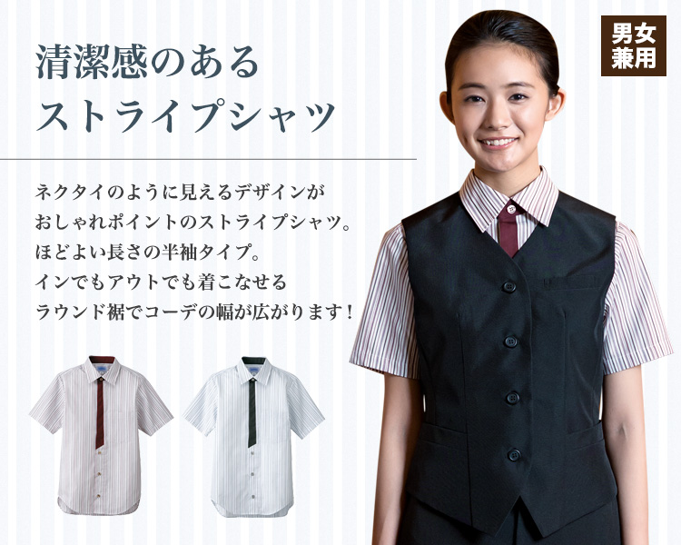 【在庫限り】ストライプ柄半袖シャツ[男女兼用](33-BT3123)